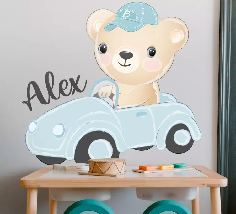 Descubre el Vinilo oso conductor adorable, una encantadora lámina decorativa que presenta un tierno oso de peluche conduciendo un coche lleno de personalidad. Este diseño infantil es personalizable, permitiéndote agregar el nombre que desees, lo que lo convierte en una opción perfecta para los más pequeños. Con su estilo de dibujos animados, este vinilo combina un aspecto juguetón y lindo, ideal para alegrar cualquier habitación.
