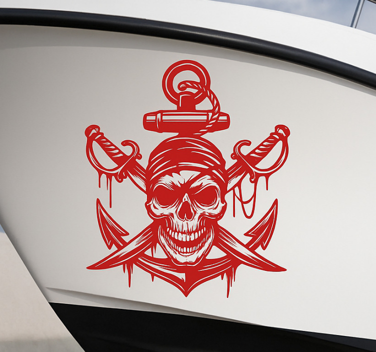 Vinilo para barco calavera pirata roja