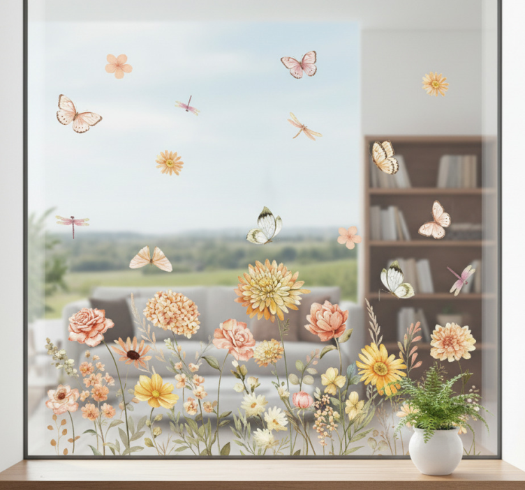 Referencia: A53280Descubre la belleza de nuestro vinilo para cristal ventana pradera de flores con mariposas, un diseño gráfico encantador que transforma cualquier espacio. Con un acabado satinado, este adhesivo evita reflejos no deseados y realza la intensidad de sus colores vibrantes. Las mariposas juguetonas y las delicadas flores crean un ambiente alegre y fresco que invita a la naturaleza a tu hogar. Este vinilo no solo es atractivo, sino también práctico, ya que se puede limpiar fácilmente con un paño húmedo.
