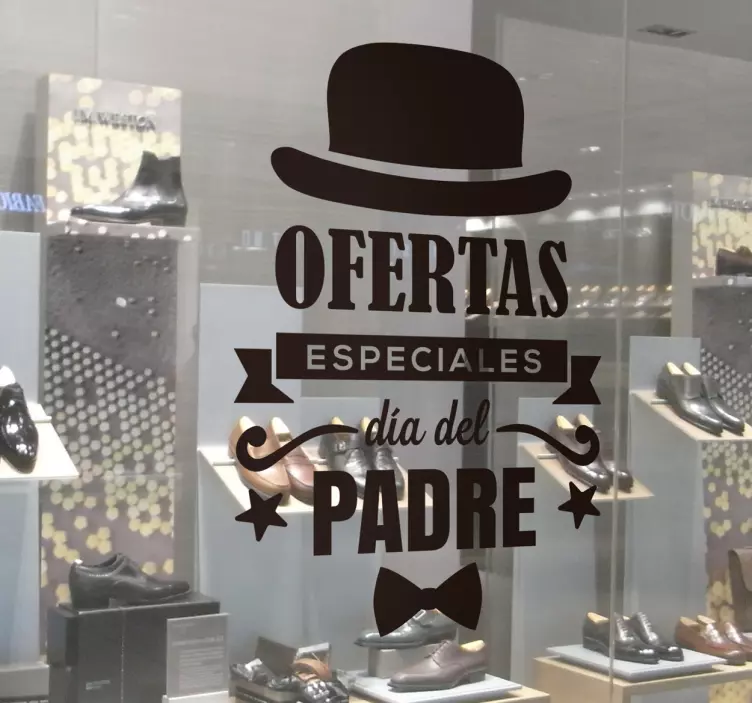 Vinilos para negocios con los que podrás promocionar de una forma original los productos de tu tienda el próximo día del padre. Este sticker es un vinilo autoadhesivo de acabado mate, muy fácil de instalar sobre cualquier superficie lisa, ya sean muros o cristales. Está disponible en un amplio abanico de colores.