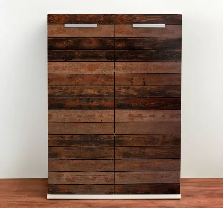Transforma tu hogar con nuestro vinilo para mueble armario de madera rústica, un diseño cautivador que evoca la calidez de la naturaleza. Con tonos marrones que simulan tablones de madera, este vinilo horizontal resalta una textura rústica que aporta un toque acogedor a tus muebles. Ideal para quienes buscan un estilo natural en su casa, este producto es perfecto para revitalizar cualquier mueble de forma sencilla y elegante.
