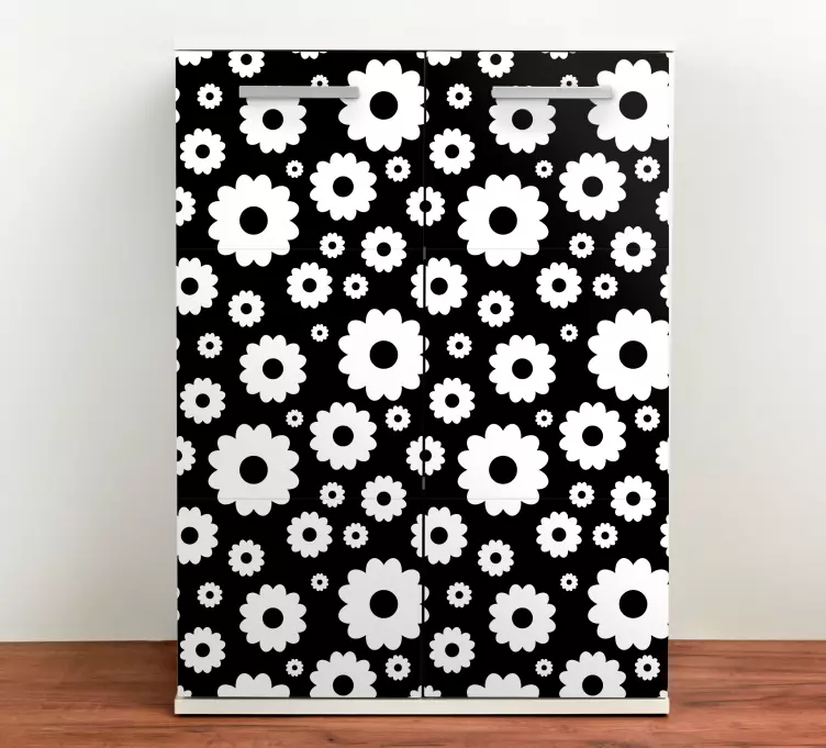 Descubre la elegancia de nuestro Vinilo para nevera arte botánico, un diseño que combina la belleza floral con un estilo moderno. Este impresionante patrón en blanco y negro presenta delicadas margaritas que aportan un toque fresco y vibrante a tus muebles. Ideal para quienes desean darle un nuevo aire a su diseño de interiores, este estampado transformará tu mueble de cocina en una obra de arte.