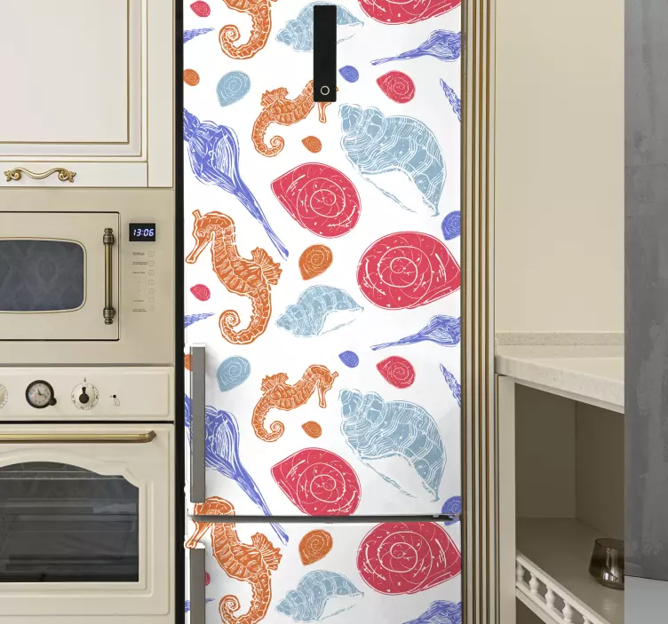 ¡Descubre la magia del océano en tu hogar con nuestro Vinilo para nevera caballito de mar y conchas! Este diseño vibrante presenta un hermoso patrón de vida marina, donde los encantadores caballitos de mar y las conchas marinas se entrelazan en un fondo acuático. Su estética juguetona y marinera transforma tu frigorífico en una obra de arte, creando un ambiente marítimo lleno de frescura y alegría. Ideal para cualquier refrigerador, este vinilo es un toque original que hará que tu cocina luzca espectacular.