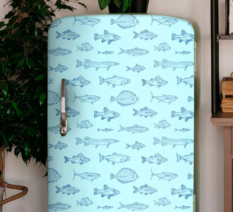 Descubre el maravilloso vinilo para nevera diseño de patrón acuático, que transforma tu refrigerador en una obra de arte inspirada en la vida marina. Este diseño cautivador presenta un hermoso patrón de peces en tonos azules, evocando la serenidad del mar y la fascinación por el Oceano. Con ilustraciones que recuerdan a los marineros y a la esencia marítima, este dibujo es perfecto para quienes desean darle un toque fresco y vibrante a su nevera. ¡Haz de tu espacio un lugar lleno de vida y color!