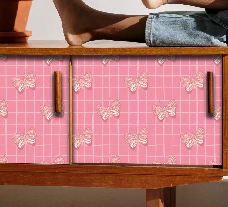 Transforma tu nevera en una obra de arte con nuestro vinilo para nevera patrón de mariposas rosadas. Este diseño encantador presenta un hermoso estampado de mariposas en tonos rosados que se entrelazan en una red a cuadros, creando un efecto decorativo que iluminará cualquier mueble. Su elegancia y frescura lo convierten en una opción ideal para quienes buscan dar un toque personal y vibrante a su hogar.