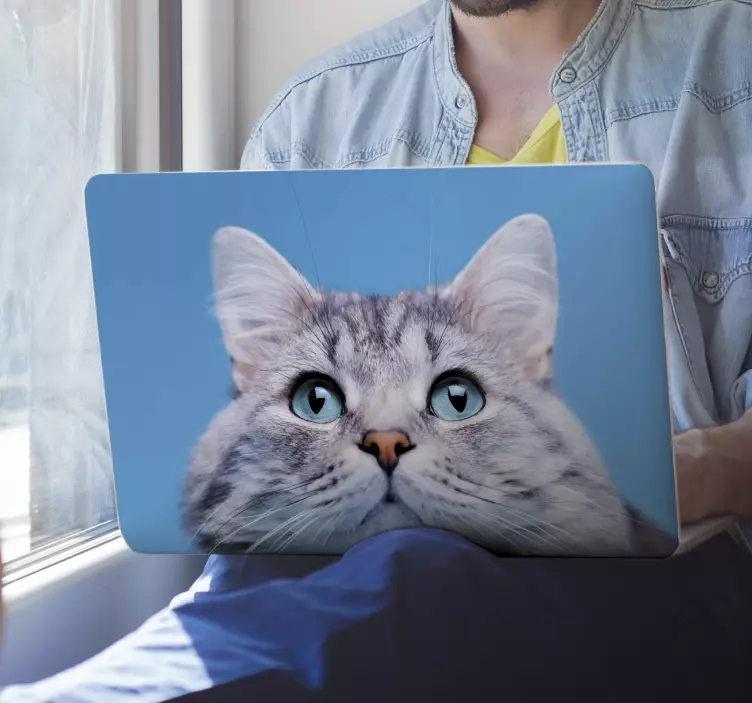 Descubre la magia de nuestro Vinilo para portátil carátula de gato, un diseño encantador que transforma tu ordenador portátil en una obra de arte. Con un fondo azul vibrante y un adorable gato que mira con sus grandes ojos, este felino es la opción perfecta para los amantes de las mascotas y los animales. La fotografía captura la esencia de este rostro amistoso, haciendo que cada vez que abras tu ordenador, sientas una chispa de alegría.
