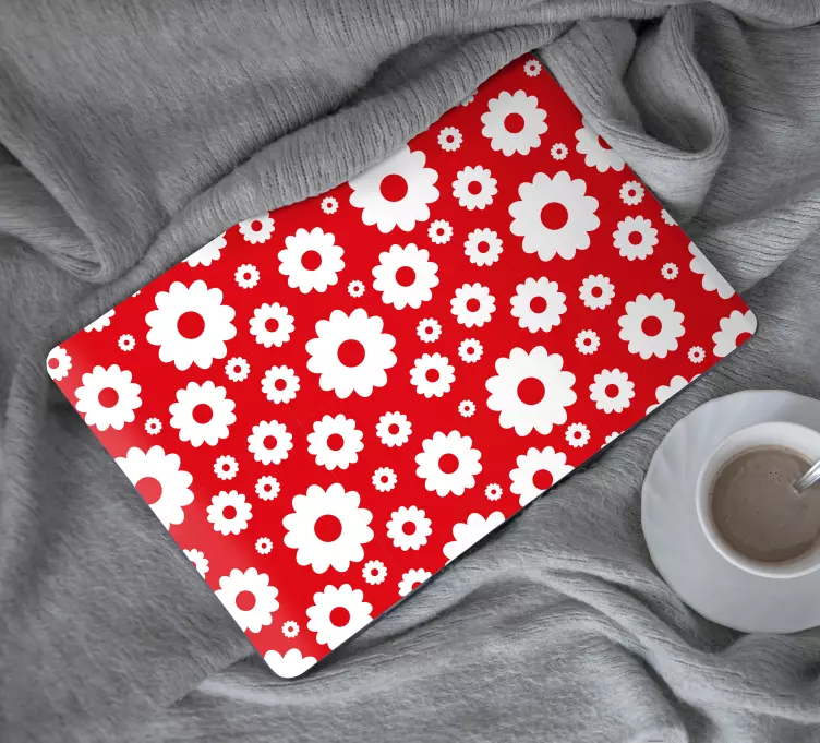 Transforma tu ordenador portátil con nuestro vinilo para portátil patrón flower power. Este diseño vibrante y juguetón presenta un hermoso estampado de margaritas y flores blancas sobre un fondo rojo, creando una atmósfera alegre que le dará vida a tu dispositivo. ¡Ideal para quienes desean un toque de frescura y originalidad en su espacio!