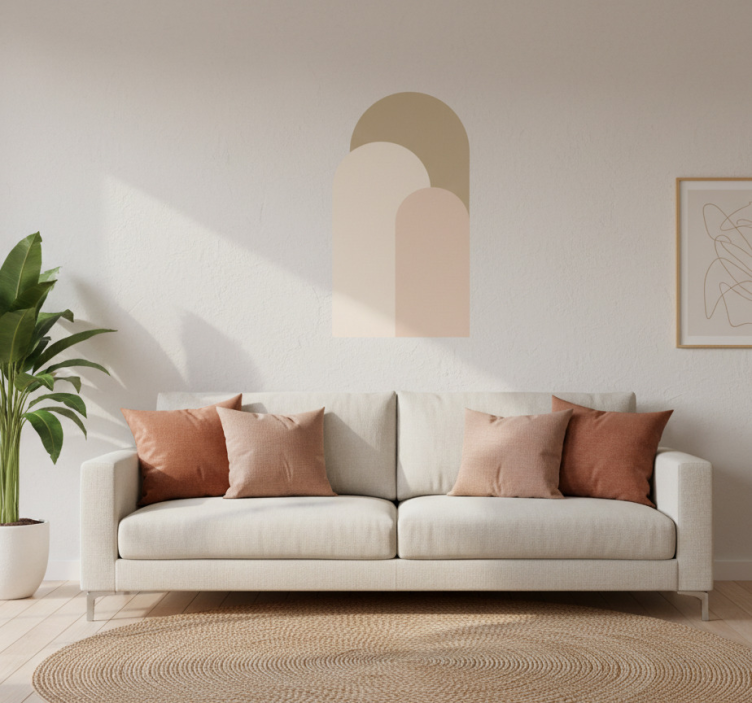 Aplicar el Vinilo pared arcos abstractos del desierto es muy sencillo. La mejor opción es utilizar cinta adhesiva de doble cara en la parte posterior del vinilo. Otra alternativa es enmarcarlo o usar adhesivos más fuertes. Simplemente pega las tiras en la parte posterior y sostén cada tira firmemente durante 10 segundos. También puedes optar por chinchetas o blu-tack reutilizable, garantizando una colocación fácil y segura.