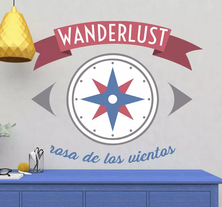 Vinilo frase wanderlust rosa de los vientos