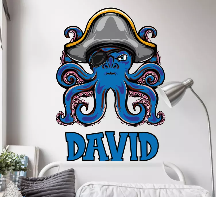 Descubre la magia del vinilo personaje pulpo pirata, una ilustración caprichosa que combina la esencia de un pulpo aventurero con la estética de un pirata. Este diseño en tonos azules es perfecto para añadir un toque divertido y personalizado a cualquier espacio. Además, puedes incluir un nombre personalizado, lo que lo convierte en una pieza única y especial.