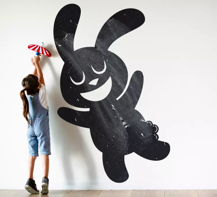 Descubre el vinilo pizarra conejito alegre, un adhesivo lleno de magia y diversión que hará sonreír a los más pequeños. Con una encantadora silueta de un conejito feliz y juguetón, este diseño caprichoso evoca la alegría de los dibujos animados, ideal para dar vida a cualquier habitación infantil. No hay nada como un conejito sonriente para inspirar la creatividad y el juego en los niños.