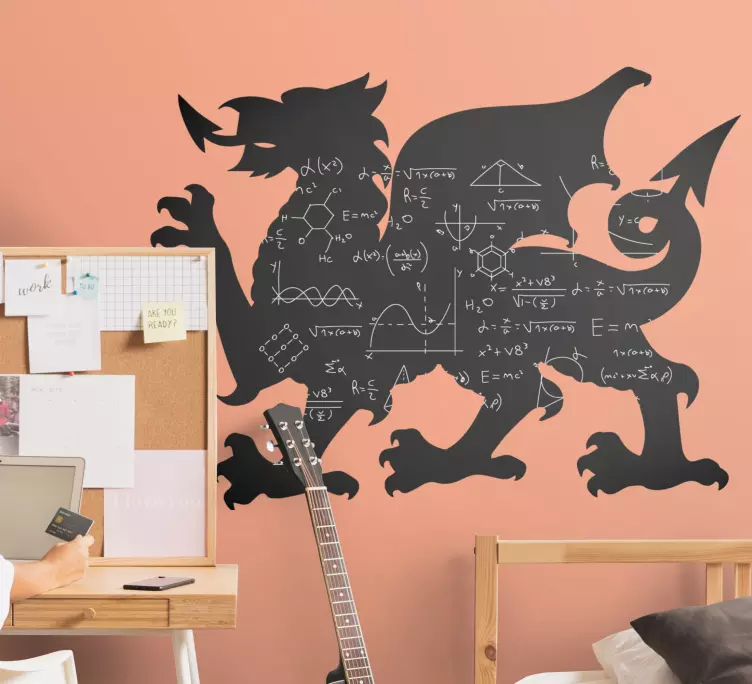 Descubre la magia del vinilo pizarra silueta de dragón galés, un adhesivo que combina un diseño gráfico estilizado con la emblemática silueta de un dragón galés. Este producto, que evoca la riqueza cultural de Gales, está diseñado con un estilo geométrico que permite a los amantes de las matemáticas y el arte disfrutar de un símbolo único en sus paredes. Es una manera creativa de personalizar tu espacio y dar vida a tus ideas.