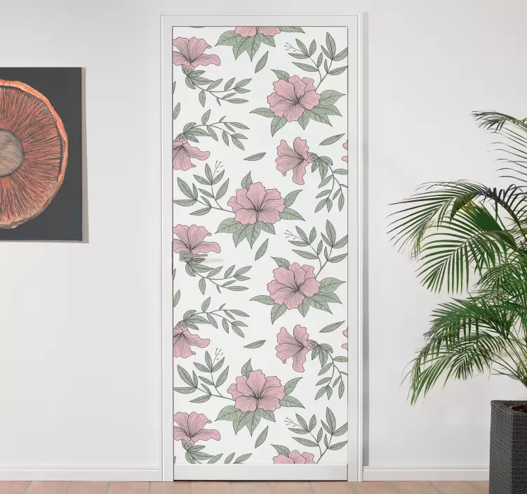Vinilo puerta Flores rosadas botánicas minimalistas